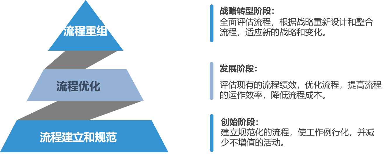 1、企業原有流程體系,與經營環境或業務結構的變化不匹配、效率低下、成本與風險之沒有形成有效的平衡;